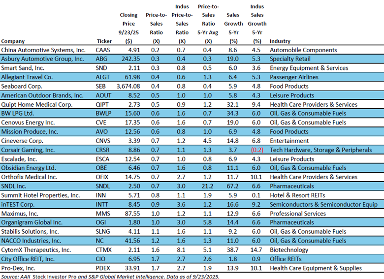 25 Stocks Passing the Price-to-Sales Screen (Ranked by Price-to-Sales Ratio)