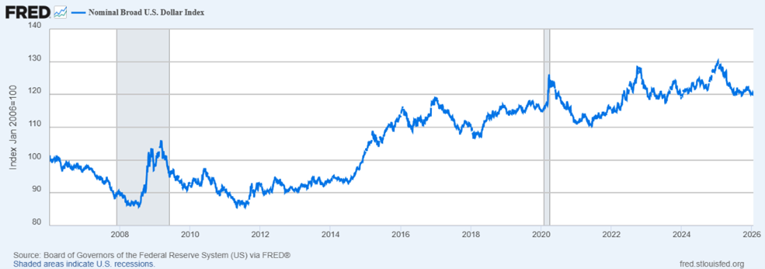 Soaring gold prices and increased geopolitical uncertainty have led to chatter about the U.S. dollar’s demise. While the greenback did weaken against a basket of currencies last year, it remains historically strong. As you can see in the chart below, the U.S. dollar has consistently traded at a premium for 11 consecutive years.