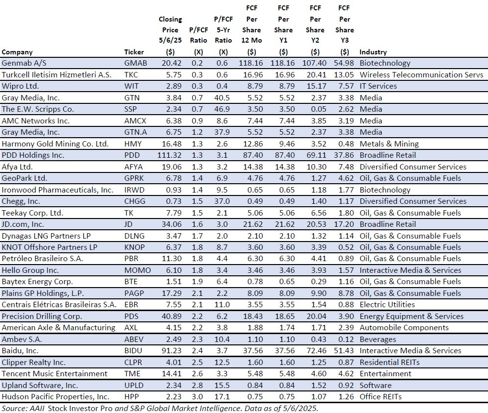 30 Stocks Passing the Price-to-Free-Cash-Flow Screen (Ranked by Price-to-Free-Cash-Flow Ratio)